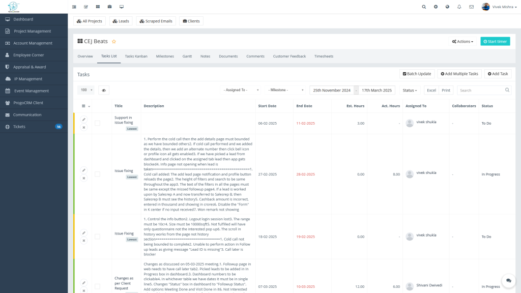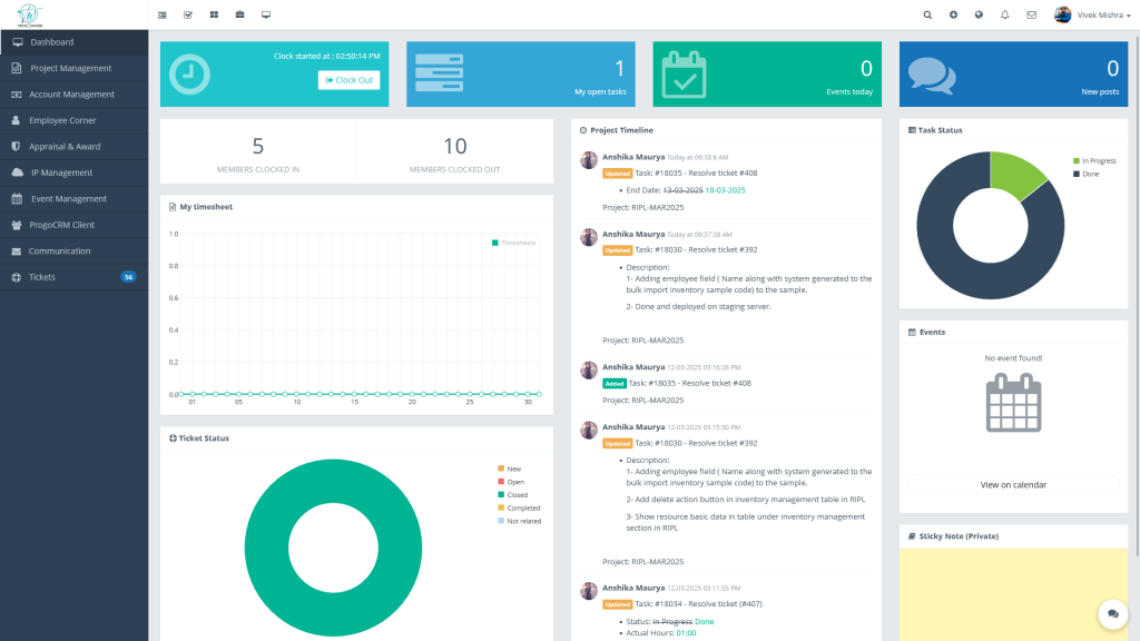 ProGoCRM V 1.1 caters to manage project invoice, and expenses; Introduction of Ticketing Module, and close team collaboration complete end to end project lifecycle.