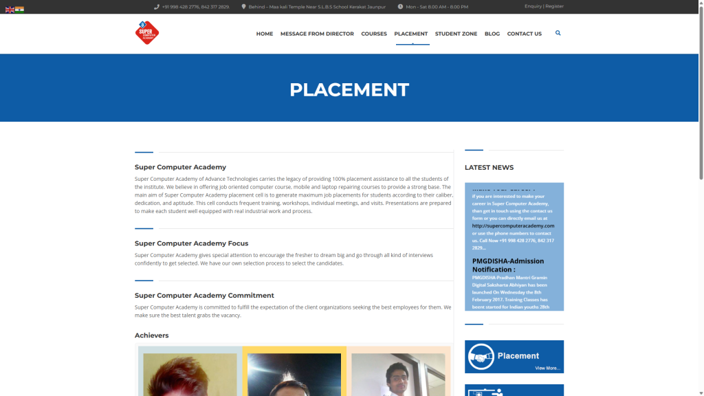Super Computer Academy is a dedicated institute based in Eastern UP, India; that commenced its Vocational & Professional Skills business in 2010 and over the years has trained more than 2500 students under various government & self- funded programs.