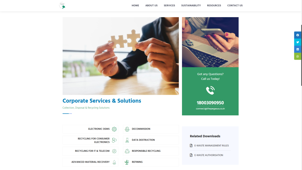 A platform specializes in handling and managing various types of waste, including electronic, electrical, battery, metal, and plastic waste. They ensure compliance with environmental regulations and offer services such as inspection, refurbishing, recycling, data destruction, and advisory services for e-waste management and compliance.